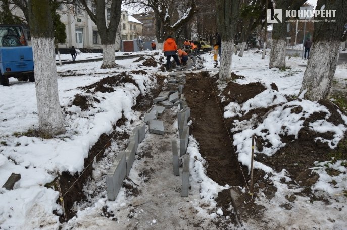 «Погодні умови не шкодять. Працівники вибирають «дорожнє корито», кладуть основу. ЇЇ привозять зі складу, тому вона немає невід'ємних температур. Бруківку можна класти спокійно», – зазначає Крась.