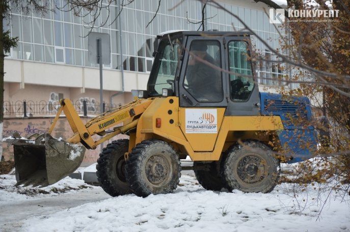 Попри сніг у Луцьку ремонтують дорогу
