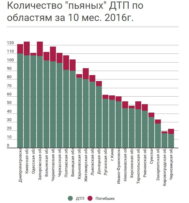 Якщо порівняти динаміку зростання цього виду правопорушень, то лідерство належить Хмельницькій області. Кількість аварій, скоєних нетверезими водіями, в там за рік збільшилася більш ніж вдвічі, у Волинській і Вінницькій областях ‒ в півтора рази.