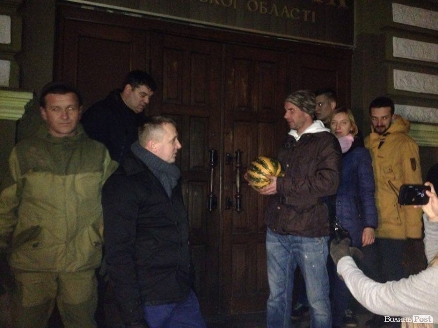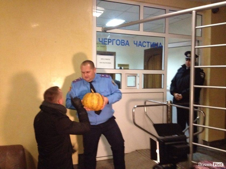У Луцьку майданівці влаштували акцію, під час якої принесли гарбузи владцям та правоохоронцям.