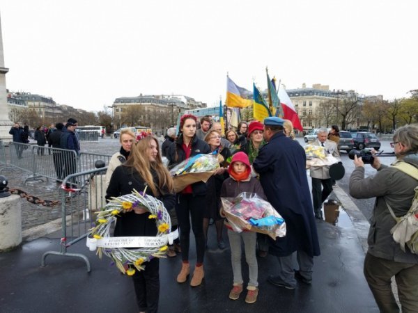 Як повідомляє представництво комітету української громади у Франції, українці провели ходу вулицями Парижа та акцію з покладання квітів на площі біля Тріумфальної арки, - пише Українська правда.