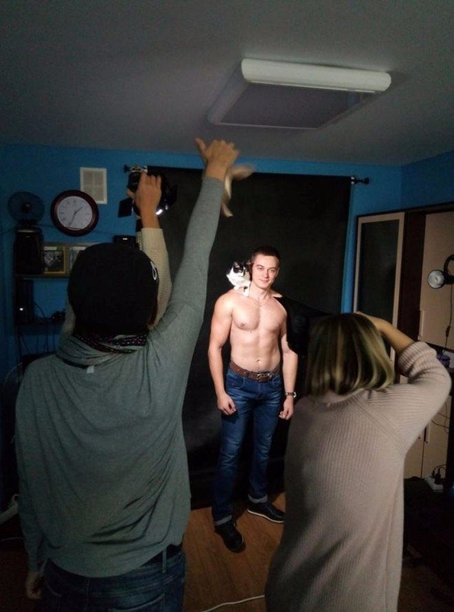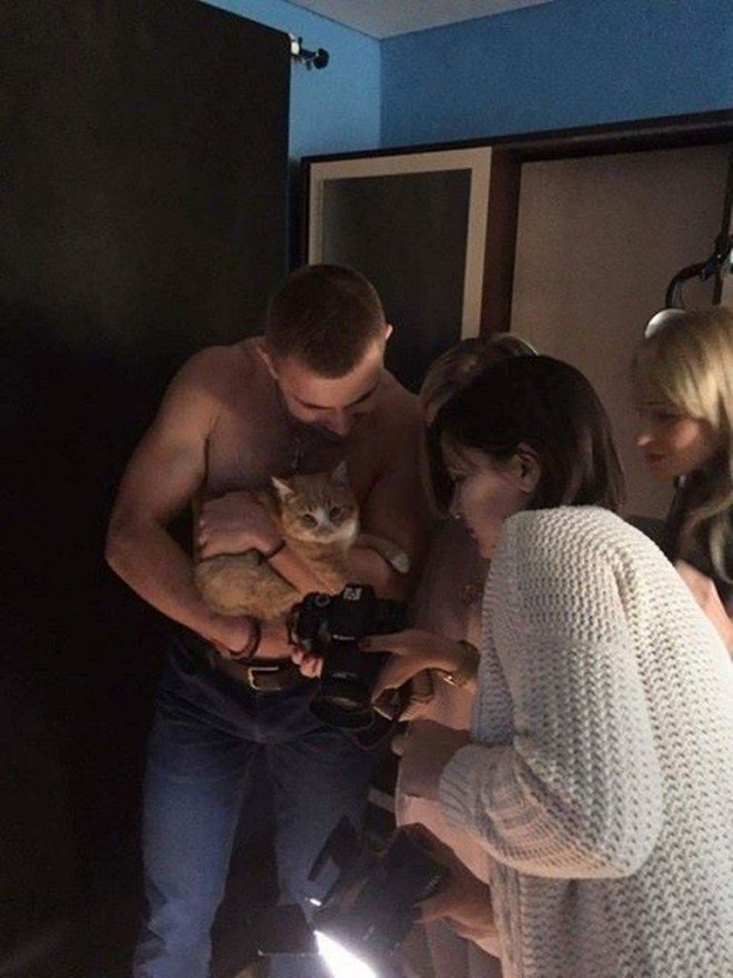 Першими у ролі хвостатих моделей спробували свої сили цуценя Шарлотка і кіт Любисток з сімейного міні-притулку «Веселий хвіст» та кіт Чапай, врятований Оленою Сідімянцевою. До речі, Чапай на фотосеті поводився найчемніше, на руках у хлопців ставав просто пластиліновим.