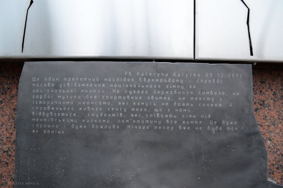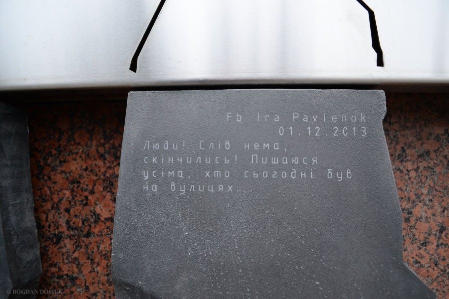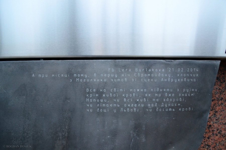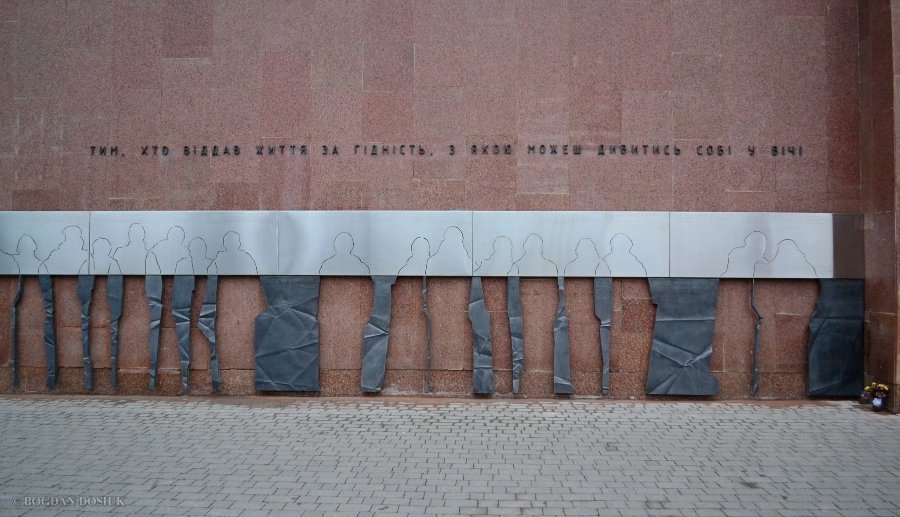 "На пам'ятній стіні викарбувано імена всіх Героїв, які в ті страшні часи Революції Гідності віддали свої життя за краще майбутнє України!
