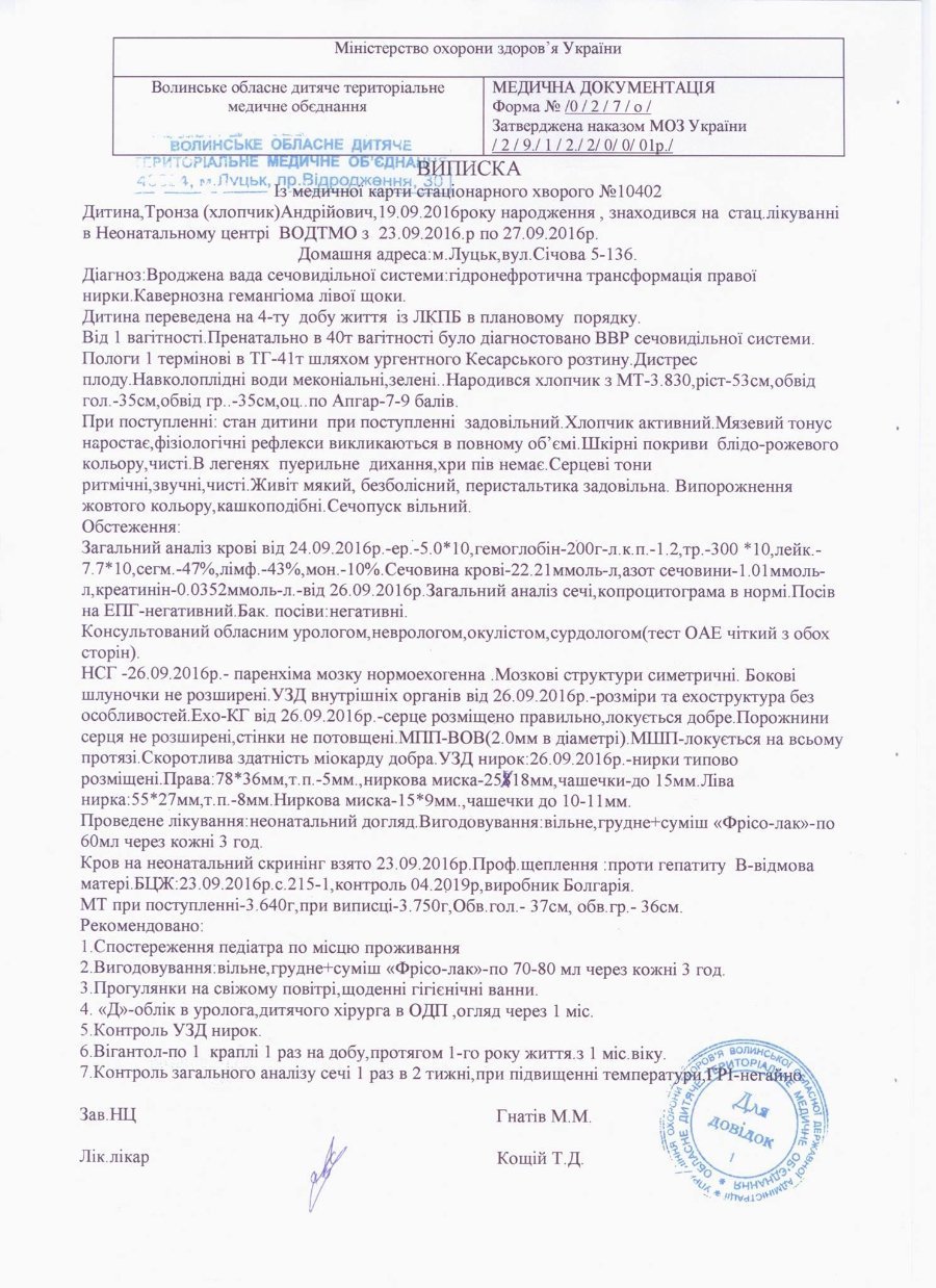 «До нас звернувся демобілізований учасник АТО Тронза Андрій Петрович з проханням допомогти у лікуванні його новонародженого сина. У хлопчика ‒ вроджена аномалія сечовивідної системи: двобічний гідронефорз ‒ справа 4 ступеня, зліва ‒ 2 ступеня», ‒ пише волонтер.