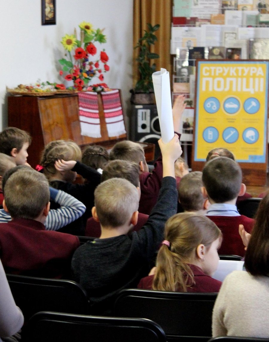 Під час зустрічі, яка відбулася у Волинській обласній бібліотеці для юнацтва школярів цікавило, як правильно переходити дорогу, чи можна дітям викликати поліцію. Відповіді на ці та інші питання учні отримали в невимушеній ігровій атмосфері на тематичному занятті, яке для них провів шкільний поліцейський Володимир Галишин.