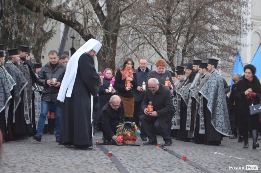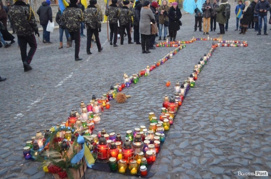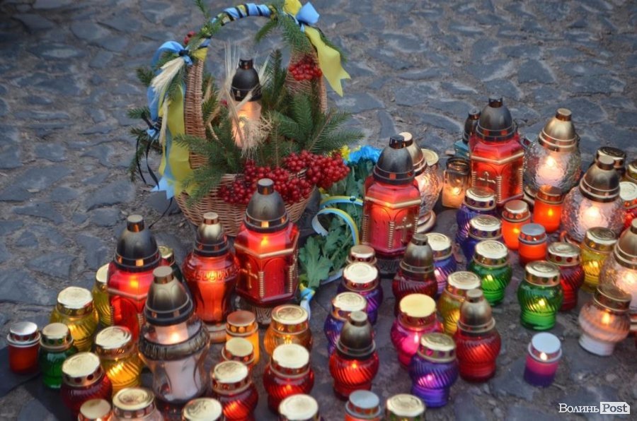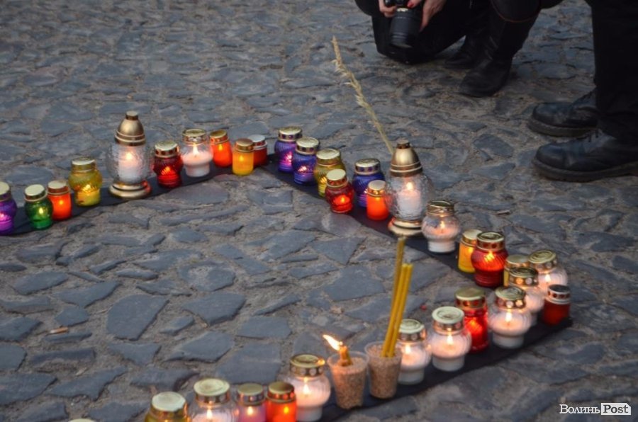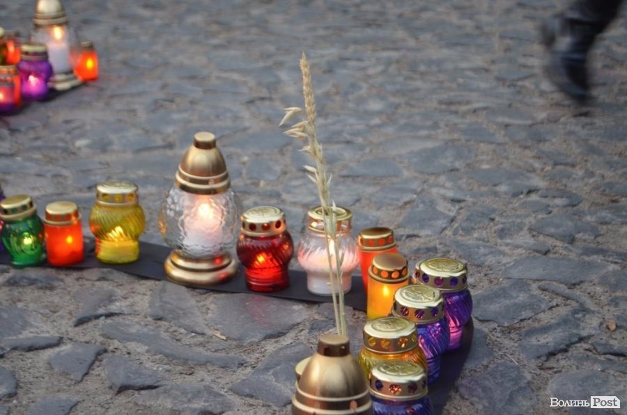 Після поминальної панахиди колона рушила на Замкову площу, де відбулась акція «Запали свічку». Сотні лучан запалили свічки у лампадках, які символізують вогонь пам’яті та скорботи.
