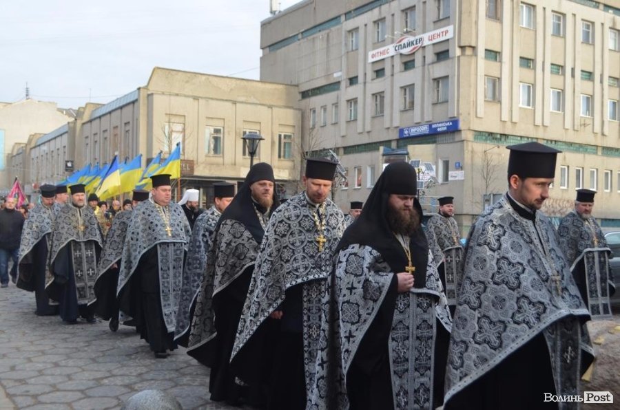 Опісля на чолі зі священнослужителями, представниками влади та військовими колона усіх небайдужих рушила скорботною ходою до Хрестовоздвиженської церкви.