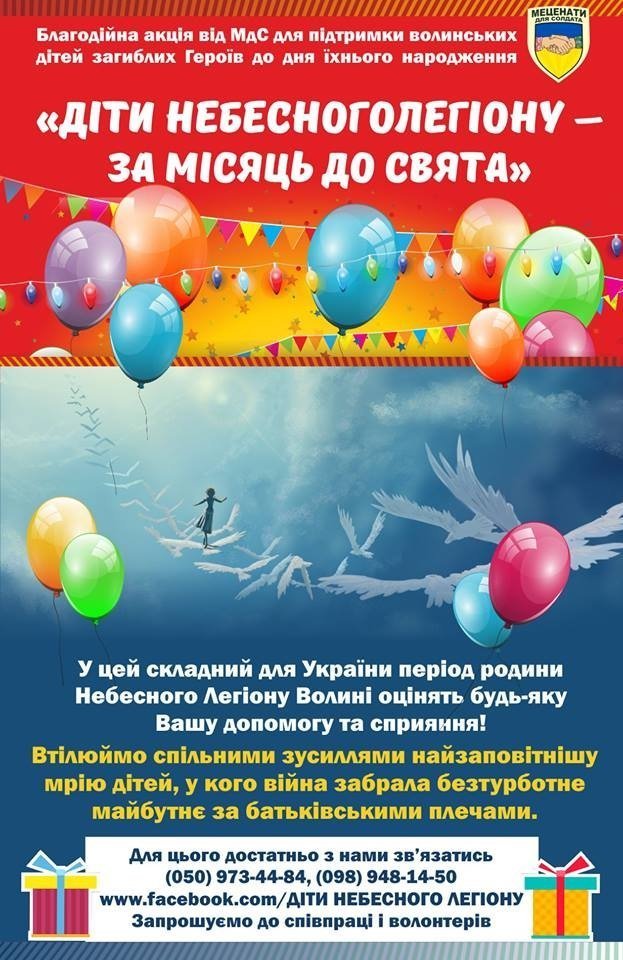 За його словами, волонтери започаткували акцію «Діти Небесного Легіону – за місяць до свята». Задля цього створили нову групу в соціальній мережі.