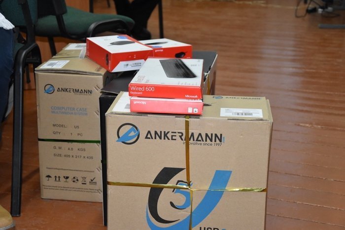 Під час сьогоднішньої зустрічі учням із Волновахи передали два комп’ютери, які придбали німецькі партнери. Зворушливим жестом доброчинства була передача коштів Карлом-Германом Крогом для сімей та дітей-сиріт, батьки яких загинули в АТО, що були зібрані під час благодійного концерту за участі українських та німецьких творчих колективів. Лист-послання та велику символічну свічу від Карла-Германа Крога отримав і владика Михаїл.