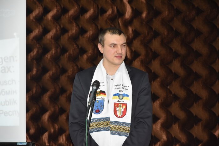 Олександр Міщук передав Миколі Романюку найщиріші вітання від адміністрації краю Ліппе та відзнаку, а діти вручили шалик, який є символом проекту.