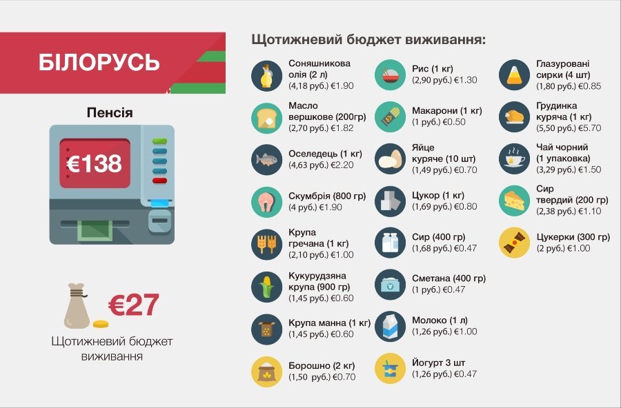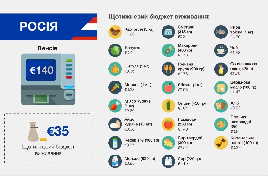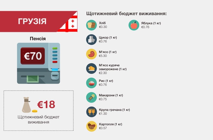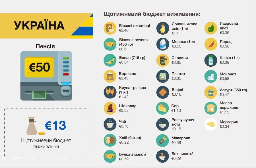 У порівнянні не тільки офіційні дані на національному рівні, а й щотижневі витрати семи конкретних пенсіонерів з цих семи країн, - Hromadske.ua.