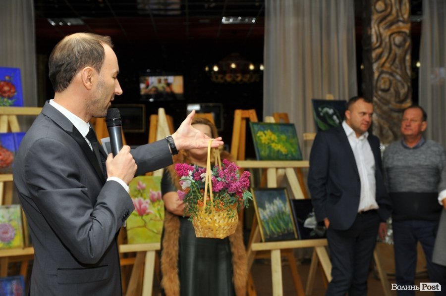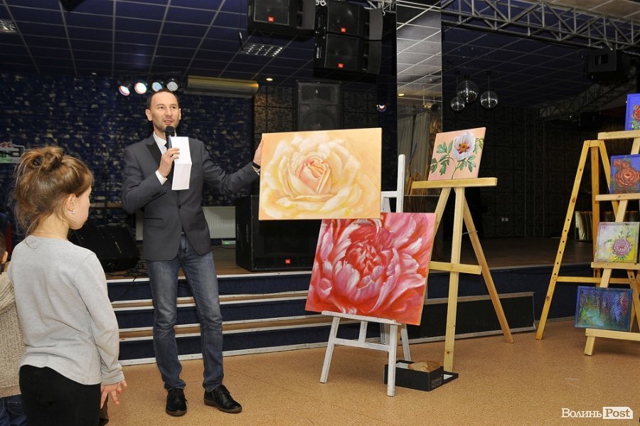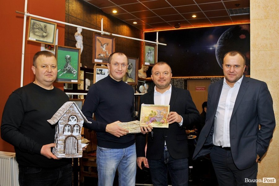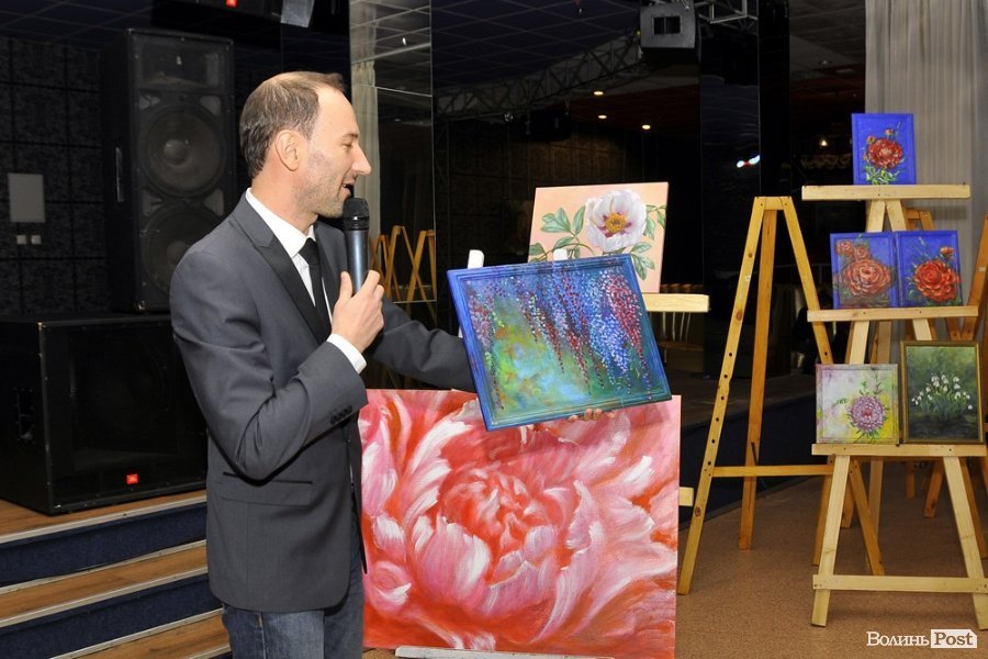 Тут ведучий «Радіо. Луцьк» Сергій Ткачук розповідав присутнім про лоти та пропонував придбати картини та ляльки. Першими щасливими власниками полотен стали власне Петро Нестерук та його колега по роботі у міській раді Сергій Шкода.
