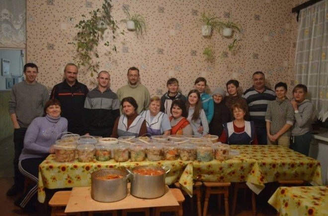 У шкільній їдальні у селі Вишнів наліпили 26 відер вареників і накрутили дві великі каструлі голубців, які відправлять бійцям АТО.