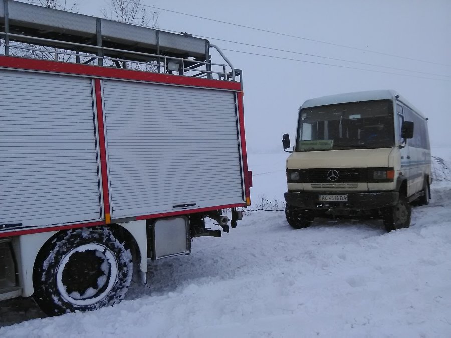 На Волині поблизу села Грибовиця бійці ДСНС звільнили зі снігового замету маршрутку, яку знесло з дороги на засніжене узбіччя.