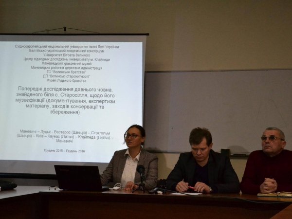Як розповіла координатор групи із дослідження та збереження човна від університету Тетяна Мамчич, із волинян до робочої групи із дослідження долучилися також археологи Олексій Златогорський, Сергій Панишко, Юрій Мазурик, а також директор Маневицького краєзнавчого музею Петро Хомич.