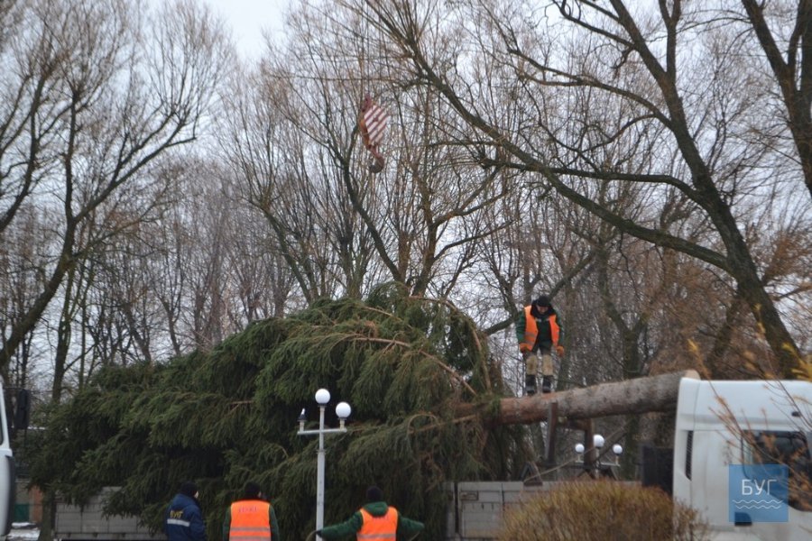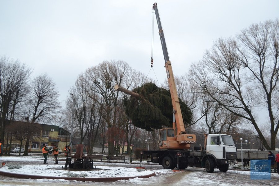 У Нововолинську 9 грудня встановили головну ялинку міста. Її висота – близько 14 метрів.