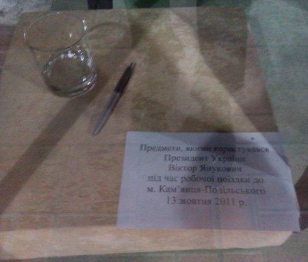 У музеї Кам'янця-Подільського виставили склянку та ручку, якими користувався президент Віктор Янукович.