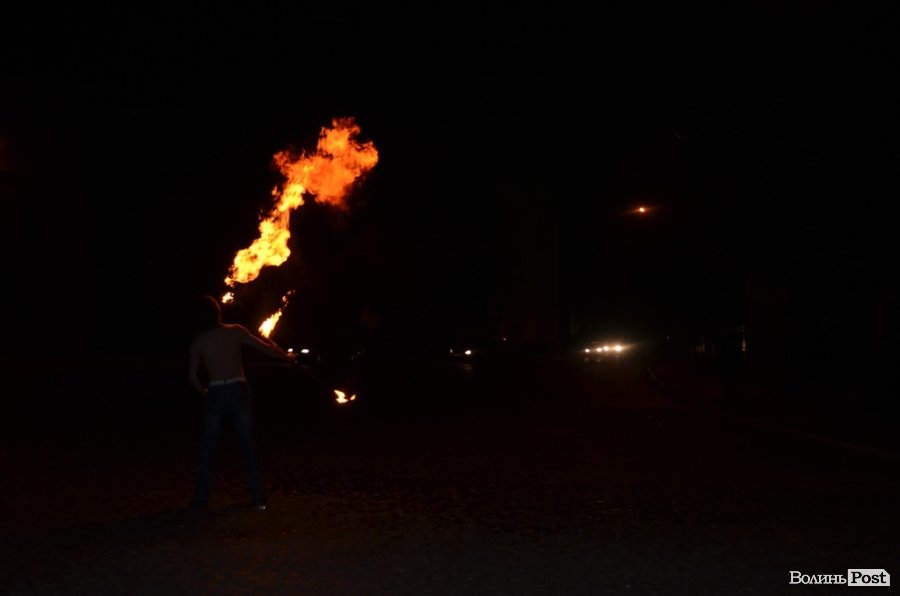 Автомайдан у Луцьку зустрічали вогняним шоу. ФОТО