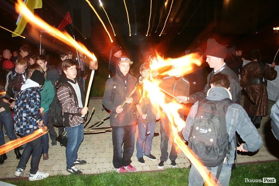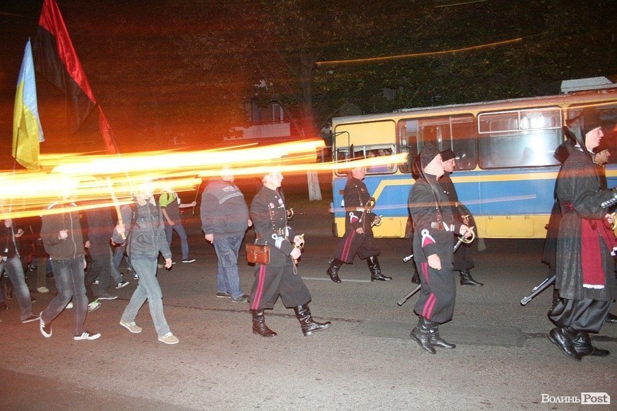У Луцьку молодь та козаки провели смолоскипну ходу центральними вулицями.