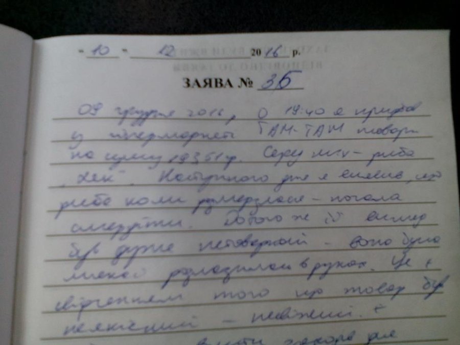 Також працівниця Там-Таму прислала йому фото-підтвердження того, що у книзі скарг є відповідь на моє звернення.