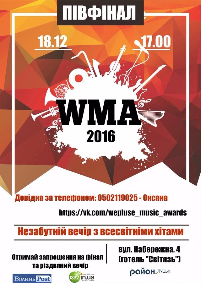 У Луцьку відбувається вокально-музичний проект «WMA 2016» де 12 учасників змагались за звання кращого вокаліста.