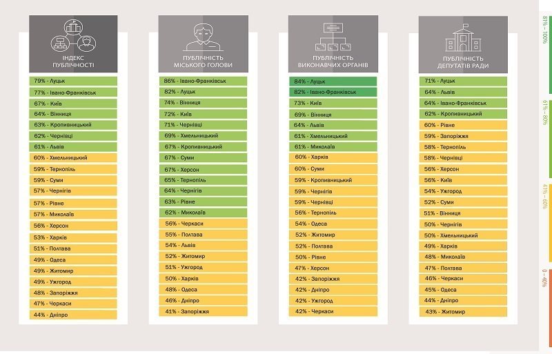 Було відмічено, що протягом останніх трьох років спостерігається позитивна динаміка зростання рівня публічності органів та посадових осіб місцевого самоврядування. Частково це пов’язано з тим, що прогресують та розширюються вимоги законодавства – щодо оприлюднення інформації про діяльність місцевих посадовців і депутатів та реалізацію ними поточної політики.