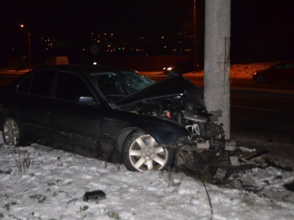 Автомобіль BMW зіткнувся з легковиком Skoda, понівечивши задню частину машини. Опісля автівка врізалася у стовп. Машина зазнала серйозних пошкоджень, передня частина іномарки знесена.