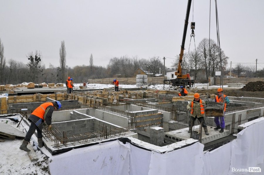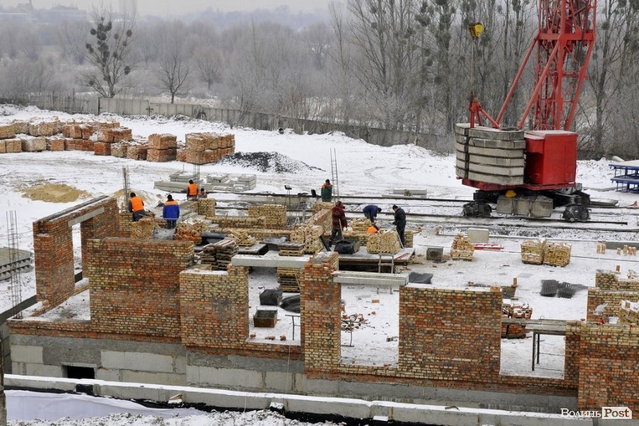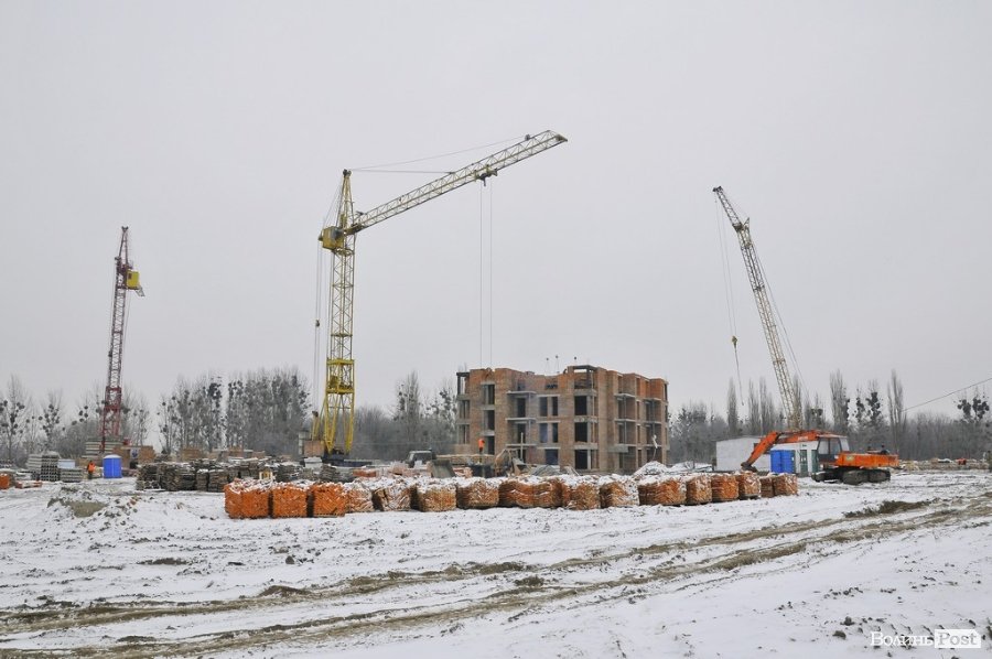Спорудження продовжують й узимку, адже є усі необхідні матеріали, а будівництво набирає обертів із кожним днем. Так, зокрема, вже розпочали зведення третього будинку з першої черги будівництва.