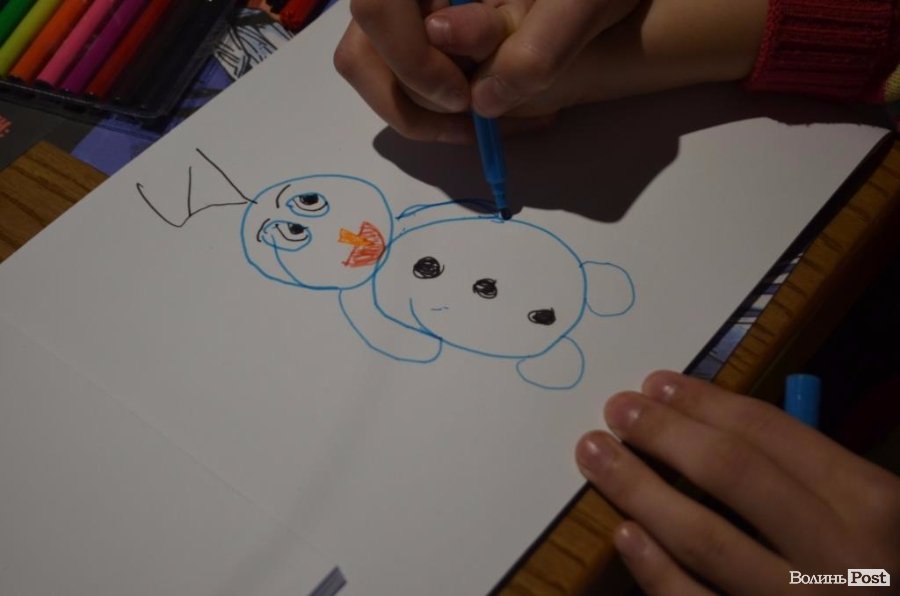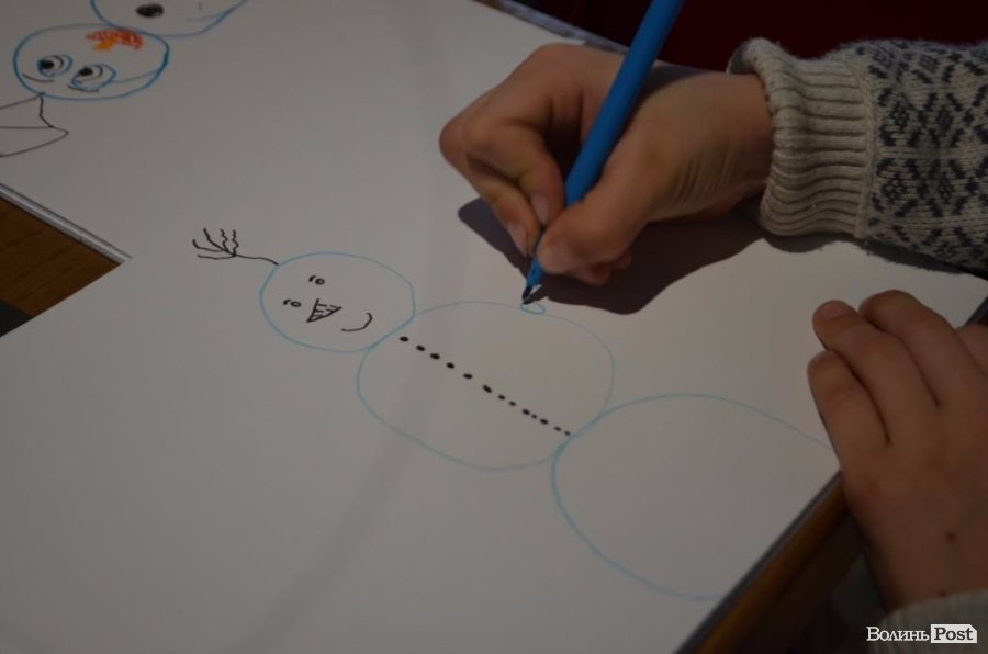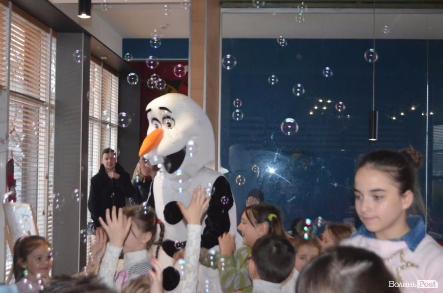 Пізніше до діток в гості завітав персонаж їхнього улюбленого мультфільму – сніговик Олаф, який разом з малечою активно ловив мильні бульбашки, грався в різноманітні ігри та спілкувався з дітьми. Натомість дітлахи зобразили свого улюбленого героя у новеньких альбомах.