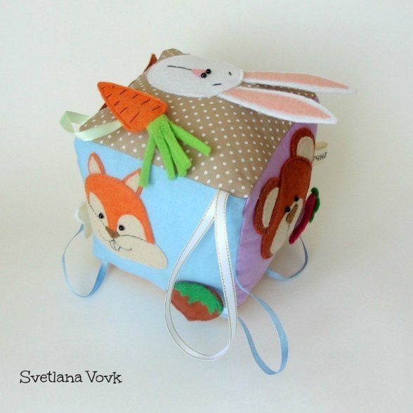 «Іграшки я виготовляю з тканини. Вони є цілком безпечні для дітей. Це можуть бути якісь тваринки, транспорт, букви, будь-що», – розповідає жінка.