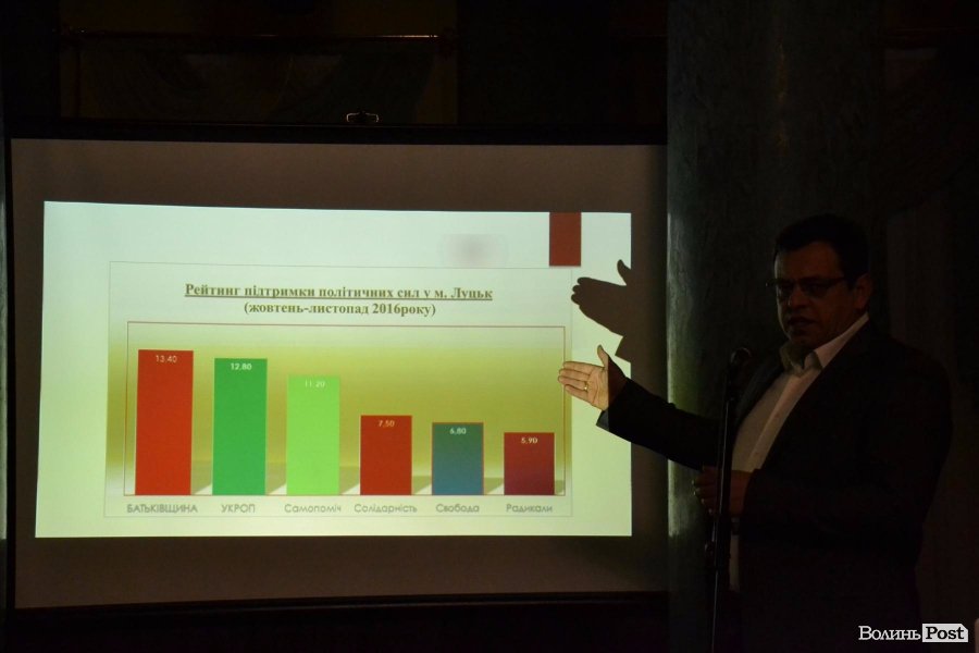 «Сьогодні ми маємо найефективнішу фракцію у Луцькій міській раді. І ми бачимо, що довіра до «батьківщини» росте», - зазначив Валерій Бондарук. На підтвердження своїх слів він продемонстрував результати опитування мешканців міста у жовтні-листопаді 2016-го, яке показали, що «Батьківщина» отримує 13,4% підтримки, «Укроп» - 12,8%, «Самопоміч» - 11,2%, «Солідарність» - 7,5%, «Свобода» - 6,8%, РПЛ - 5,9%.