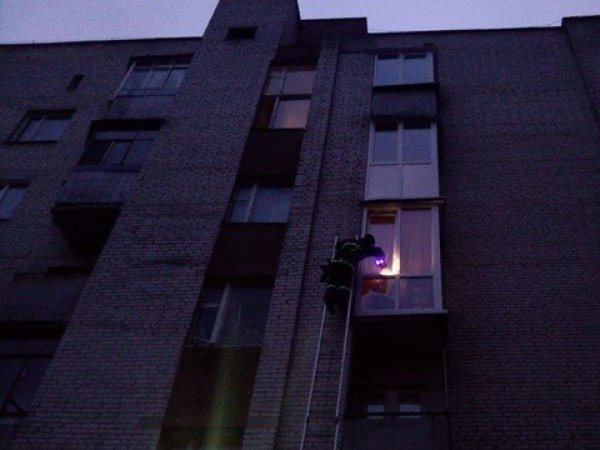 З квартири на третьому поверсі йшов дим, але двері ніхто не відчиняв. Рятувальники поставили драбину і відкрили вікно, один із рятувальників заліз усередину.