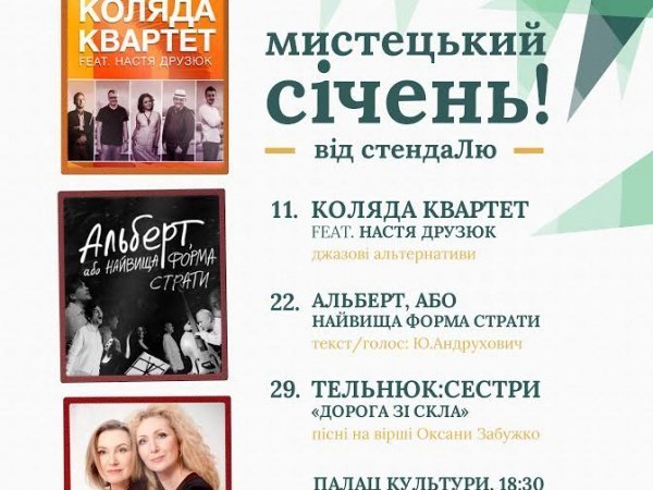 Усі три заходи відбудуться у рамках проекту «Мистецький січень від «стендаЛю».