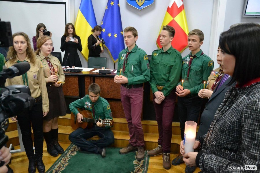 Волинські пластуни передали Луцькій міській раді Вифлеємський вогонь, який отримали від польських харцерів.