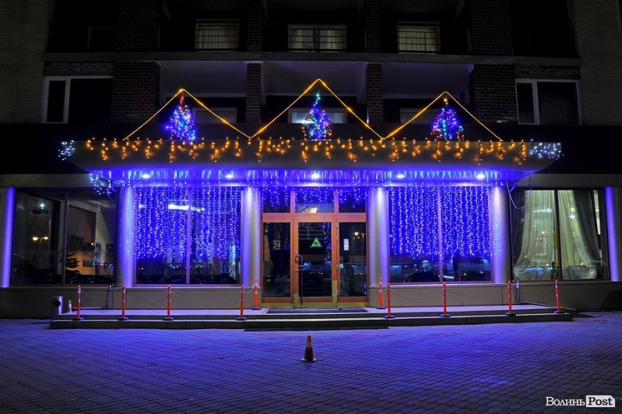 Традиційно напередодні Нового Року та Різдва Христового Луцькі будівлі засяяли гірляндами та прикрашені відповідною атрибутикою.