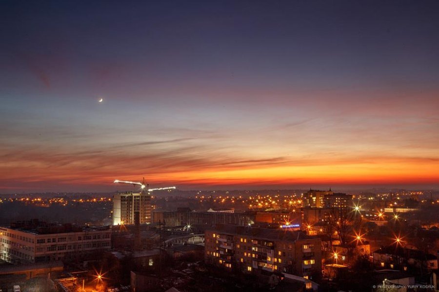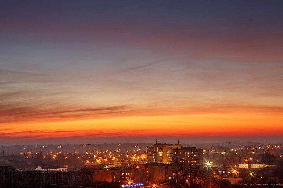Фотограф Юрій Косюк опублікував у Facebook світлини заходу сонця в Луцьку.