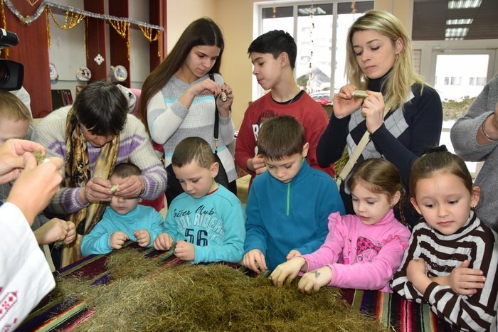 У рамках мистецького проекту «Різдвяна майстерня» у Луцьку провели майстер-клас із виготовлення з сіна янголів та дідухів, участь у якому взяли діти загиблих атошників.