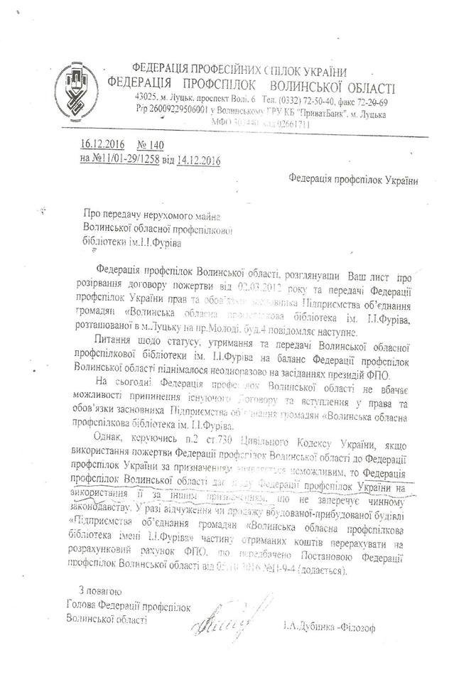 «Тепер же профспілки вирішили позбутися бібліотеки, а приміщення пустити з молотка. Колектив бібліотеки не погоджується з таким рішенням», - написав Шелеп.