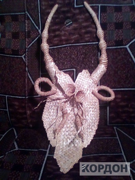 «Солома має бути зрізаною власноруч із городу у переджнивний період. Найкращою є житня: довга і легко піддається обробці. Її сортують в пучок, підрізають зайві кінці й запарюють у воді. Аби надати гарного кольору матеріалові, треба додати у воду ложку-дві соди», – ділиться далі секретами жінка.