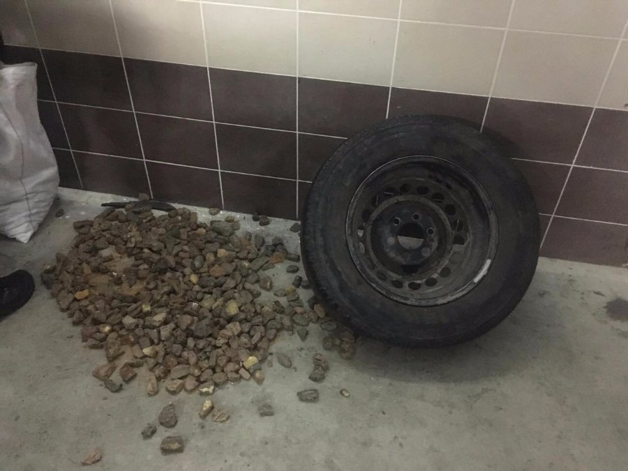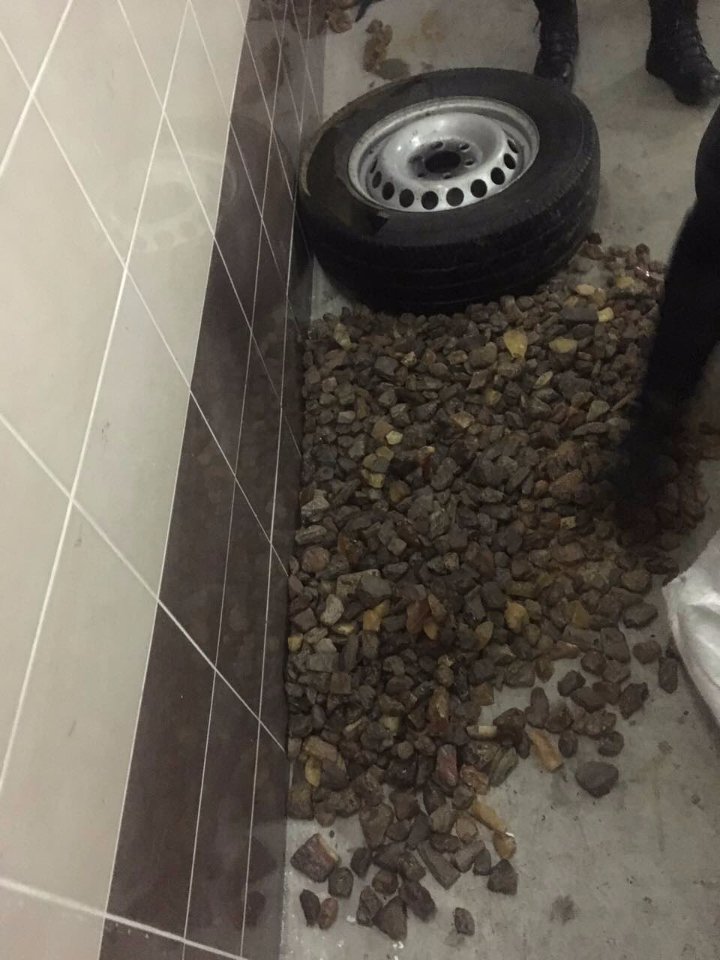 В запасному колесі в багажнику автомобіля спільна прикордонно-митна оглядова група знайшла 25 кілограм 100 грамів необробленого каміння бурштину. Автомобіль з вантажем передано представникам ДФС.