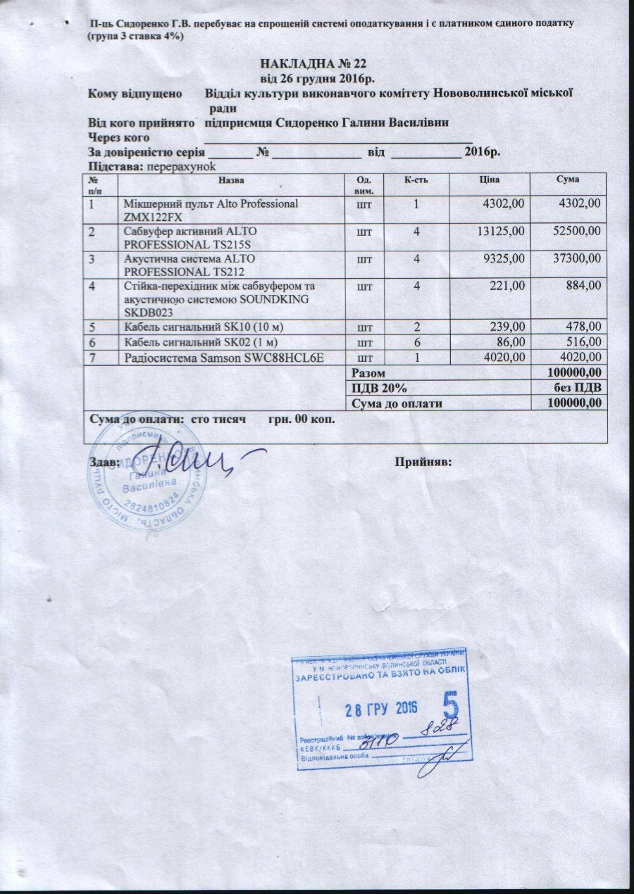 Цікава накладна, а де підпис того, що прийняв???...а казначейство вже і зареєструвало))).
