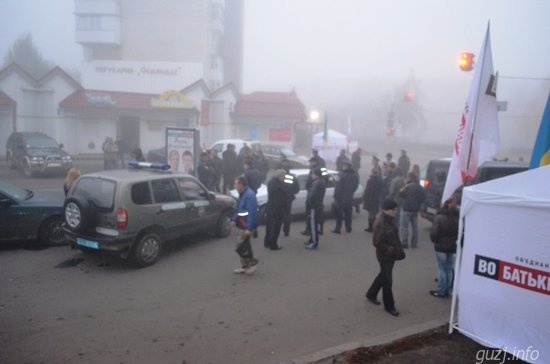 Тому для того, щоб цього не сталося біля автомобіля цілу ніч чергували активісти «Батьківщини» та журналісти. На ранок тут було розбито невеличке наметове містечко, в якому перебуває близько 20 активістів партії. Вони не заважають роботі правоохоронців, проте слідкують аби ті не відпустили чоловіків з білого авто.