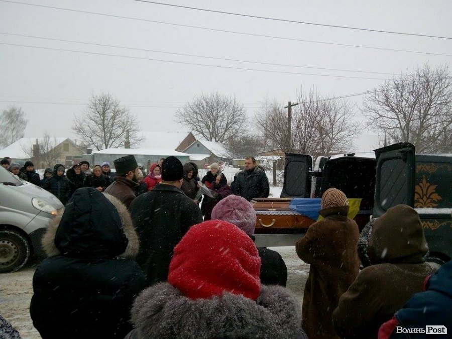 Тіло Героя доправили на Волинь 13 січня. У селі його зустрічали люди, які попри негоду стояли на колінах.