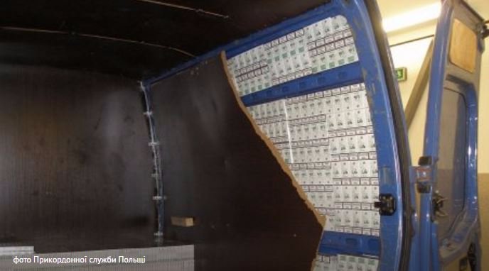 Зокрема водій мікроавтобуса Opel Movano заховав сигарети різних марок без польських акцизних знаків під обшивку дверей і салону автомобіля.