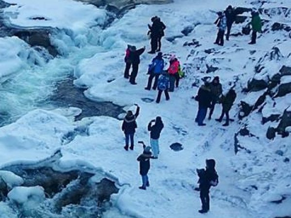 На фото можна побачити, як водоспад вкрився кригою. Тож туристи підходять до бурхливих потоків річки Прут і роблять унікальні фото.
