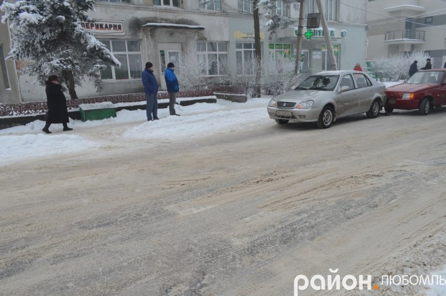 У центрі Любомля трапилася дорожньо-транспортна пригода, однією із причин якої стала слизька дорога. Та й поліцейські на місце аварії прибули тільки після дзвінка їхньому начальнику.