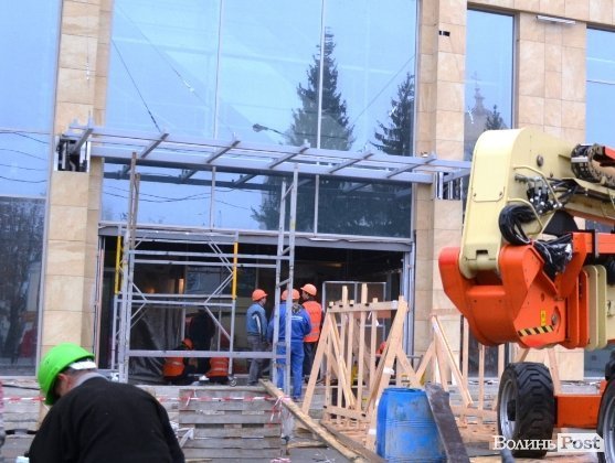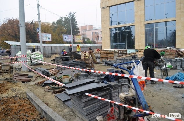 Увечері понеділка, 22 жовтня, з фронтальної сторони будівельного майданчика прибрали паркан: тепер лучани можуть бачити, як перед ЦУМом кладуть бруківку. Половина площі вже впорядкована.