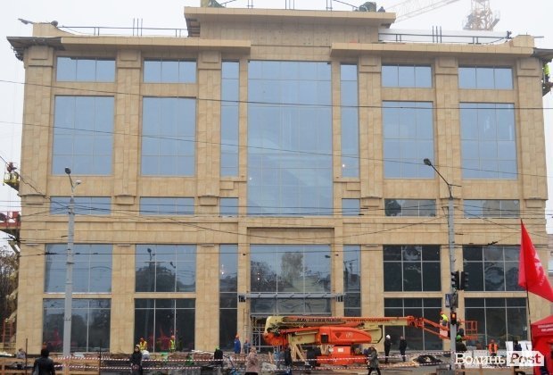Нині у будівлі нового ЦУМу практично готовий фасад, тривають внутрішні роботи.