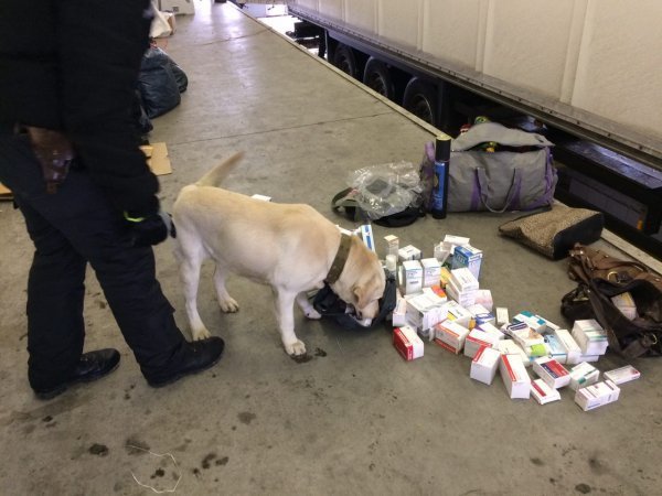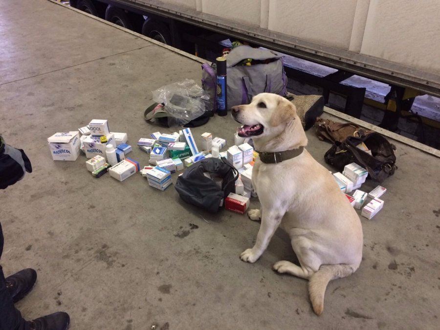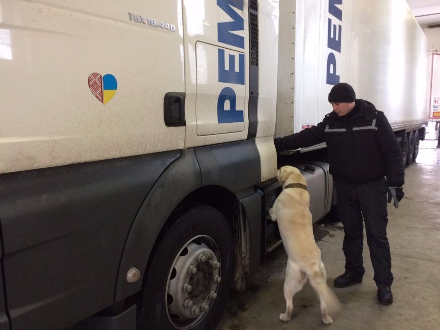 Під час прикордонно-митного оформлення при огляді кабіни транспортного засобу спрацював прикордонний собака Вегас, що навчений на пошук наркотичних засобів.