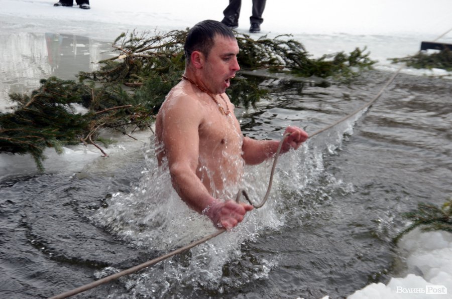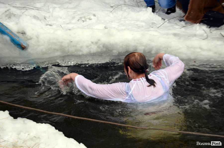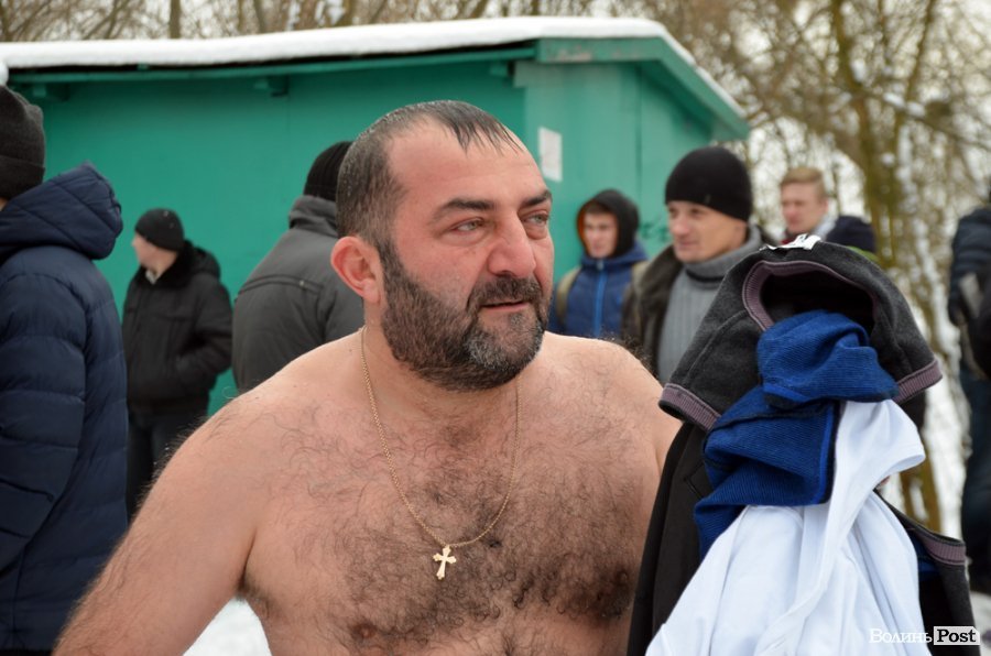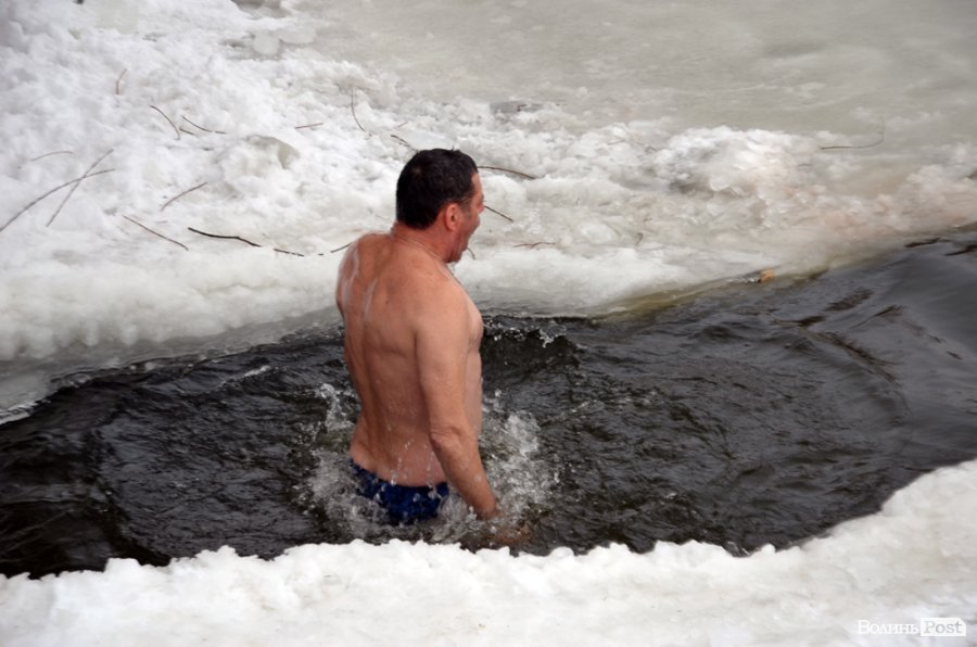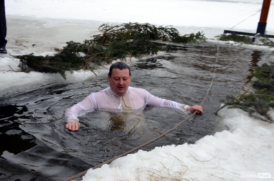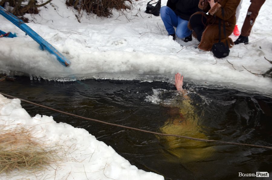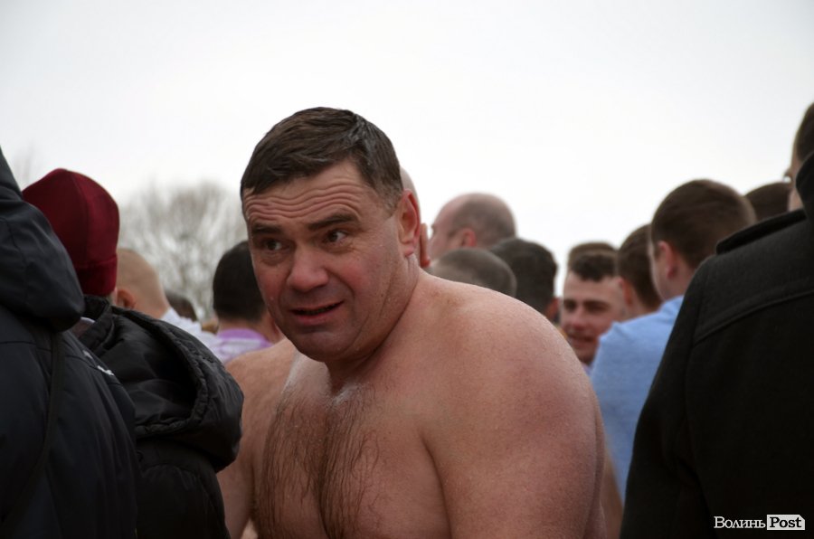 Після цього до води вишикувалася справжня черга із охочих зануритися. Одним із перших у води Стиру пірнув заступник голови Волиньради Олександр Пирожик.